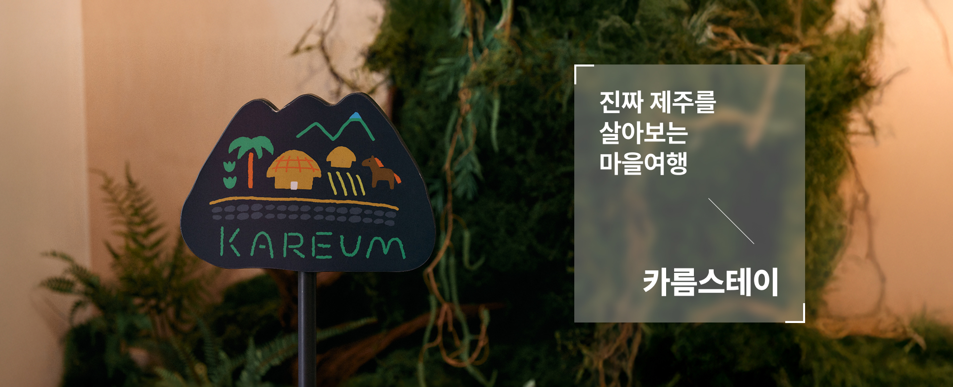 카름(Kareum)은 낯설지만 순수한 제주말로 작은 동네, 마을을 뜻합니다.