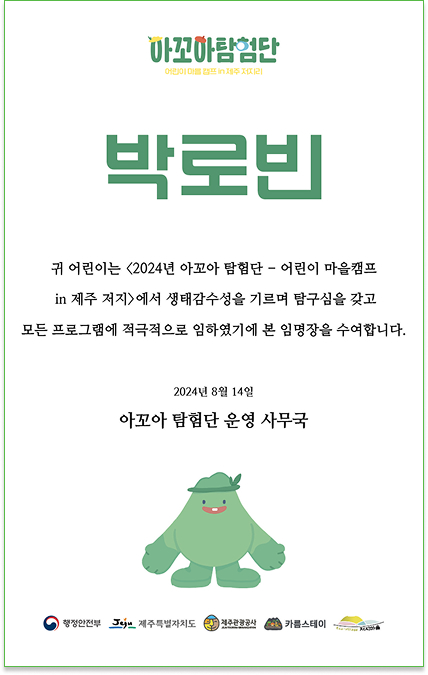 ![]() 아꼬아 탐험단 임명장 ![]() |