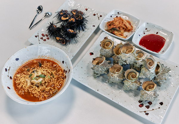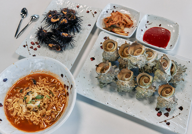 - 내가 바다에서 직접 건져 올린 재료로 끓여낸 해물라면, 방금 손질한 성게와 소라를 바로 먹는 재미는 덤! 제주 바다의 싱싱한 맛에 삼춘들의 따뜻한 인심까지 더해져 오늘 잡은 한상차림이 펼쳐집니다.