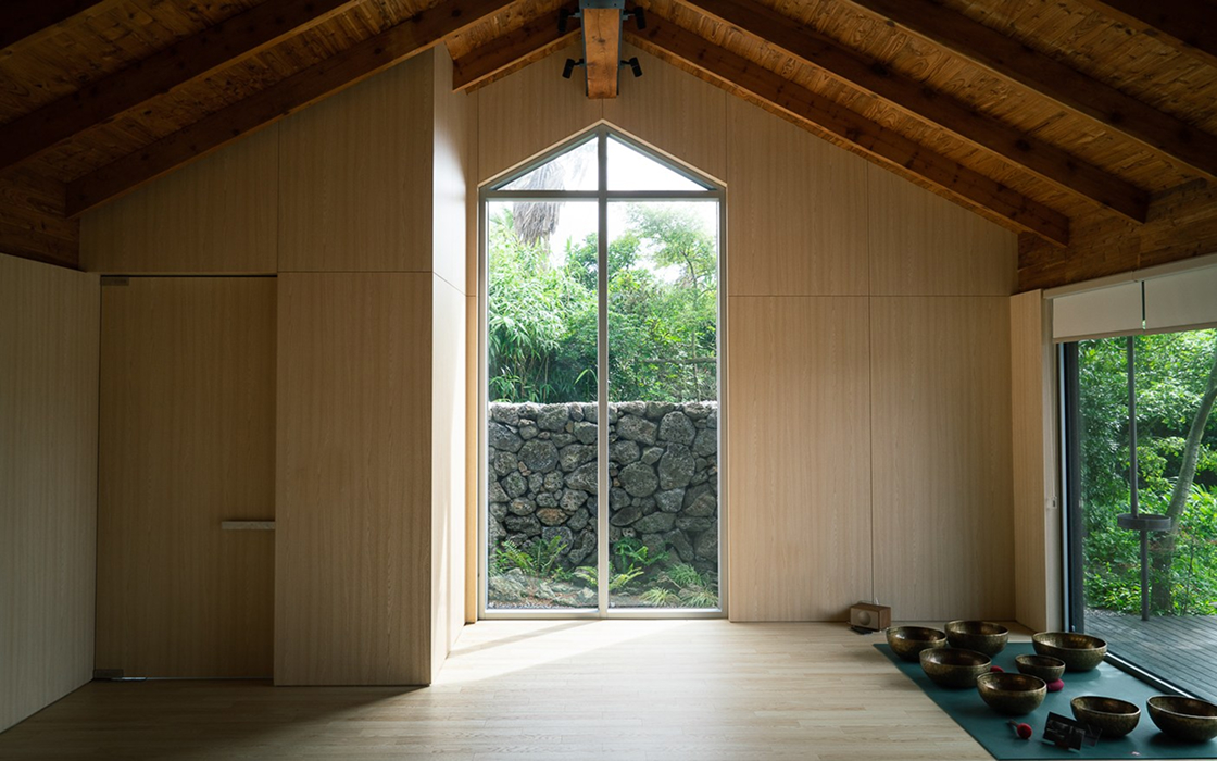 ‘무’, ‘위’, ‘자’, ‘연’. 네 개의 객실 이름부터 심오합니다. 각 방에는 요가 매트, 싱잉볼, 다기, 녹차가 준비되어 있어 언제든 명상과 요가를 즐길 수 있어요. ‘연’ 객실에서는 외부 시선이 차단된 프라이빗한 정원에서 한라산을 바라보며 요가를 할 수 있답니다. 상상만 해도 평화롭지 않나요?