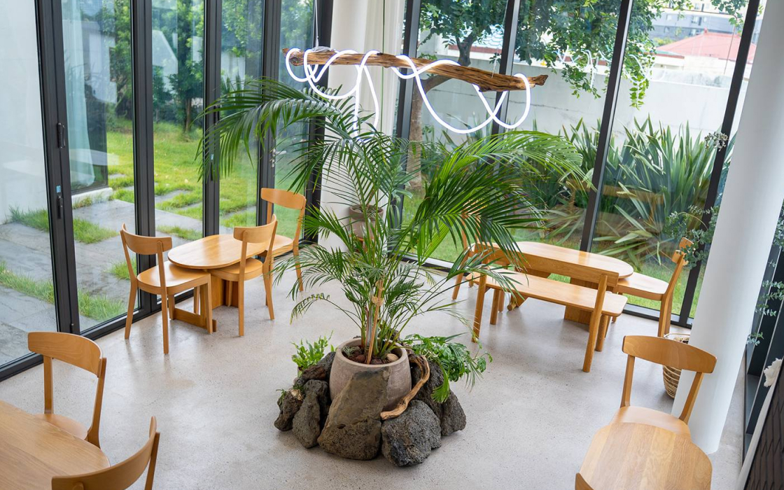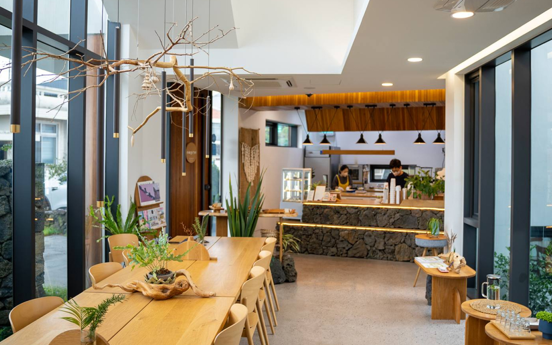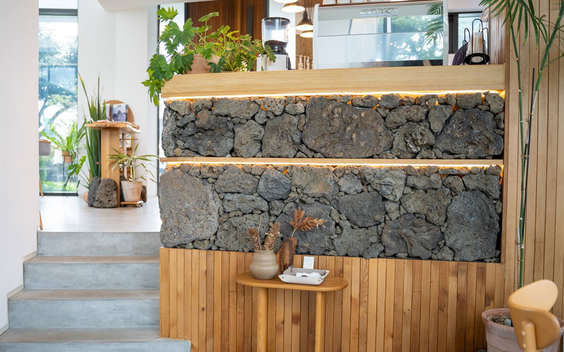 음료 한 잔으로 제주를 더 특별하게 즐겨보세요. 하효 토박이 어머니가 직접 농사지은 청귤로 만든 ‘노을빛제주’는 이름처럼 제주의 노을을 담았어요. ‘솔티캐러멜 크림 라떼’의 고소달콤한 맛도 놓치지 마세요. 오브제주의 또 다른 매력은 정원입니다. 돌담 아래 아담한 곶자왈 정원과 4계절 내내 노란 하귤이 주렁주렁 달린 메인 정원은 제주 그 자체예요.