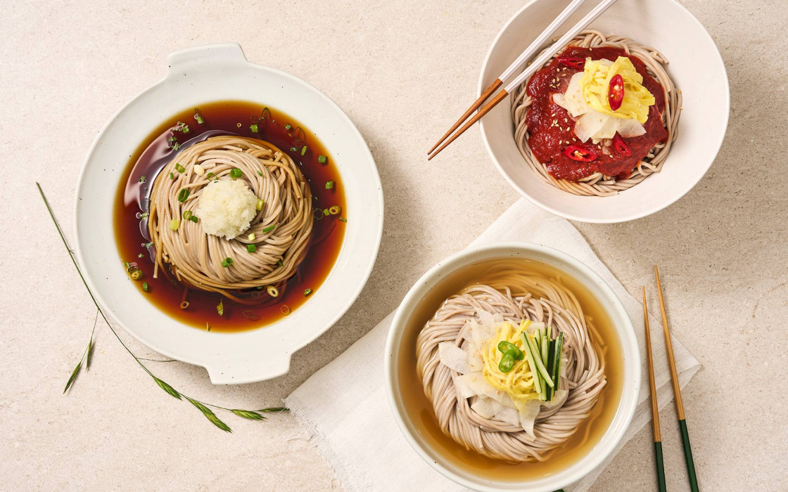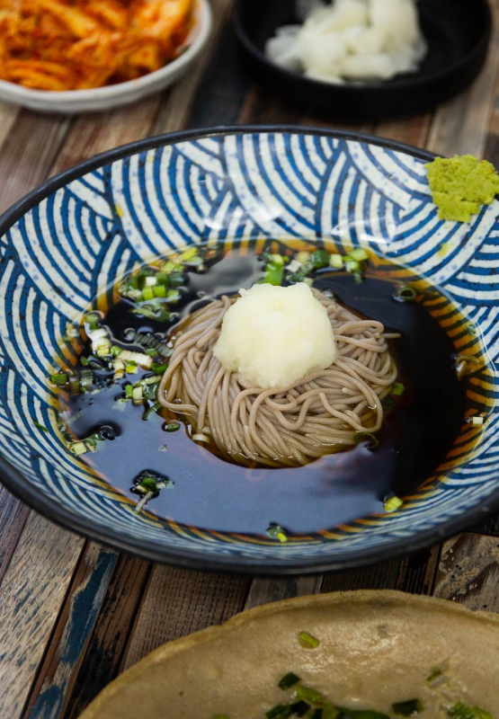 이 식당의 주인 윤영수 대표는 이렇게 말합니다. “저희는 메밀 농사부터 수확, 제분, 제면까지 모든 과정을 직접 해요. 제주 메밀의 본맛을 제대로 느낄 수 있는 한 그릇을 제공하는 것이 저희의 목표입니다.” 정말 직접 기른 메밀로 모든 공정을 거치다 보니, 그 맛은 확실히 다른 곳과는 차별화된 느낌이에요. 부드럽고 쫄깃한 식감에 서로 눈이 마주치게 되죠. ‘제주에서만 느낄 수 있는 이 맛!’이라는 생각이 절로 듭니다. 오랜만에 함께하는 시간이어서 그런지 더욱 특별하게 느껴지기도 하고요. 메밀 특유의 고소한 맛과 함께 입안에서 퍼지는 자연의 풍미는 제주의 자연을 그대로 담아낸 듯합니다. 이곳의 메밀면은 정말 특별해요. 어떤 전분이나 첨가물도 들어가지 않고, 오직 메밀과 물로만 만들어져 있어요. 그럼에도 불구하고 면발은 쫄깃하고 끊어지지 않아요. “자체 특허를 받은 제면기로 면을 뽑아내기 때문에 가능한 거죠,”라는 윤 대표의 설명을 듣고 나니, 더욱 신뢰가 갑니다. 들기름에 비벼 먹는 메밀 들기름면이나 깔끔한 동치미 물냉면, 진한 가쓰오 육수와 함께 먹는 메밀 소바까지, 이곳에서의 한 끼는 단순한 식사가 아니라 제주의 자연을 온몸으로 느끼는 경험처럼 느껴집니다.
