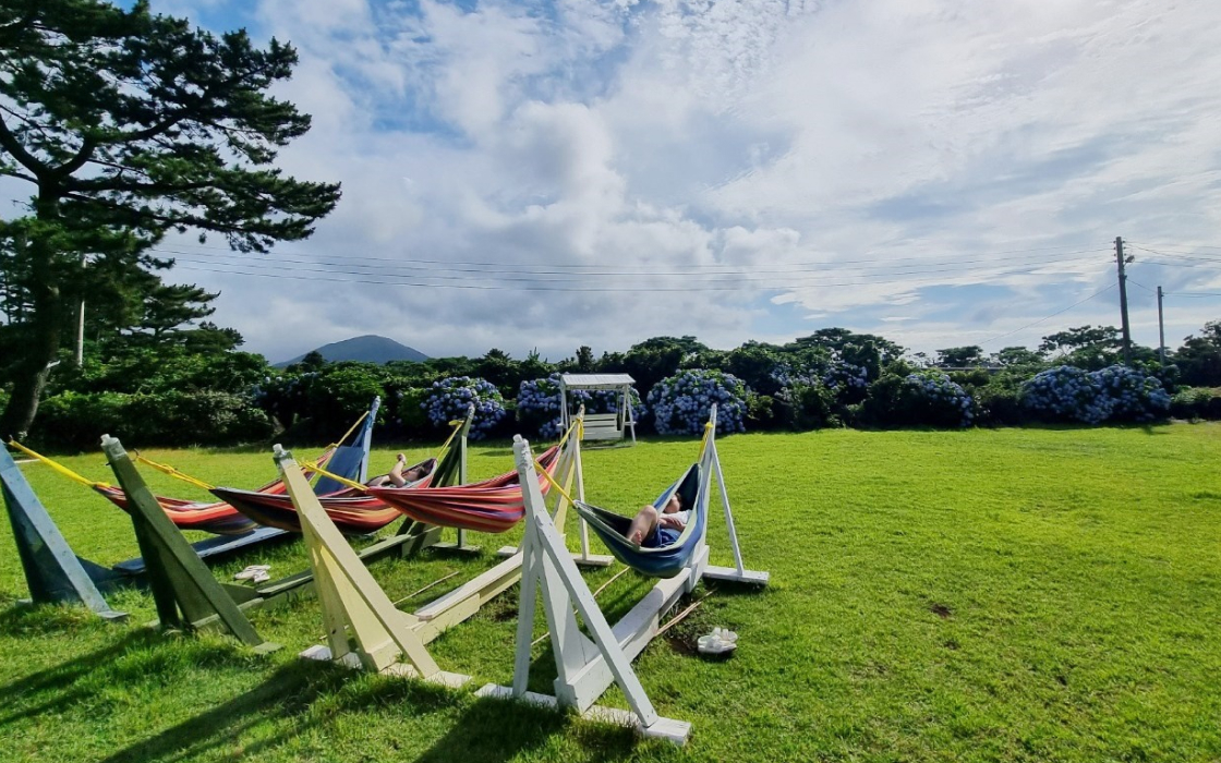 여행이 늘 바쁘게 움직여야 하는 건 아니죠. 때로는 그냥 쉬는 게 최고의 힐링이 될 수도 있습니다. 오름 게스트하우스에는 넓고 푸른 200평 정원이 있어요. 이곳에서는 바쁘게 어딘가를 찾아가지 않아도, 그저 해먹에 누워 바람을 맞으며 쉬기만 해도 여행의 의미가 채워집니다. 낮에는 해먹에 몸을 맡긴 채 새들의 노래를 들으며 책 한 권을 펼쳐보는 것도 좋고, 밤에는 잔디밭에 누워 별을 바라보며 ‘별멍’을 하는 것도 특별한 경험이 됩니다.아무것도 하지 않아도 괜찮은 곳, 그 자체로 여행이 되는 곳이 바로 이곳입니다.