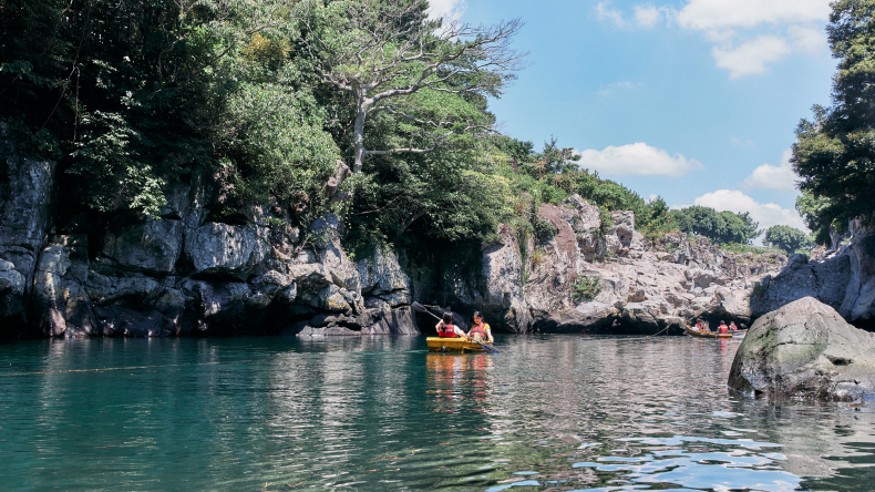 가장 따뜻한 기후로 가장 달콤한 감귤이 자라는 하효마을에서 하효살롱협동조합 김미형 대표와 다문화 여성들이 함께 만드는 전통 감귤과즐 만들기 체험을 해보세요. 한라산의 물줄기가 흘러내린 효돈천의 담수와 해수가 만나 생긴 깊은 웅덩이 쇠소깍에서 테우를 타며 여유로운 시간을 즐겨보세요.