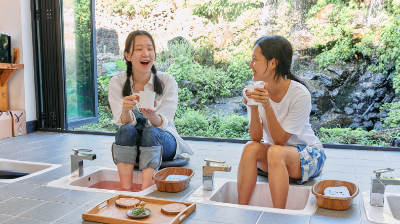 - 100년 된 하귤 나무와 귤 밭 속, 동화 같은 공간에서 오각형 통창·노천탕으로 자연스러운 휴식