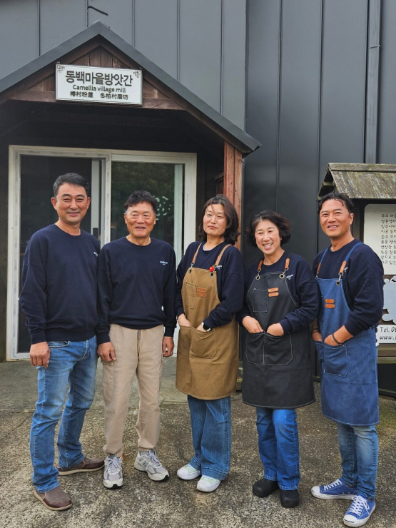 동백꽃만 보는 게 아니라 마을 사람과 어울려 참여하는 프로그램도 있어요. 마을 사람들과 같이 방앗간에서 동백기름 짜기 체험도 할 수 있어요.