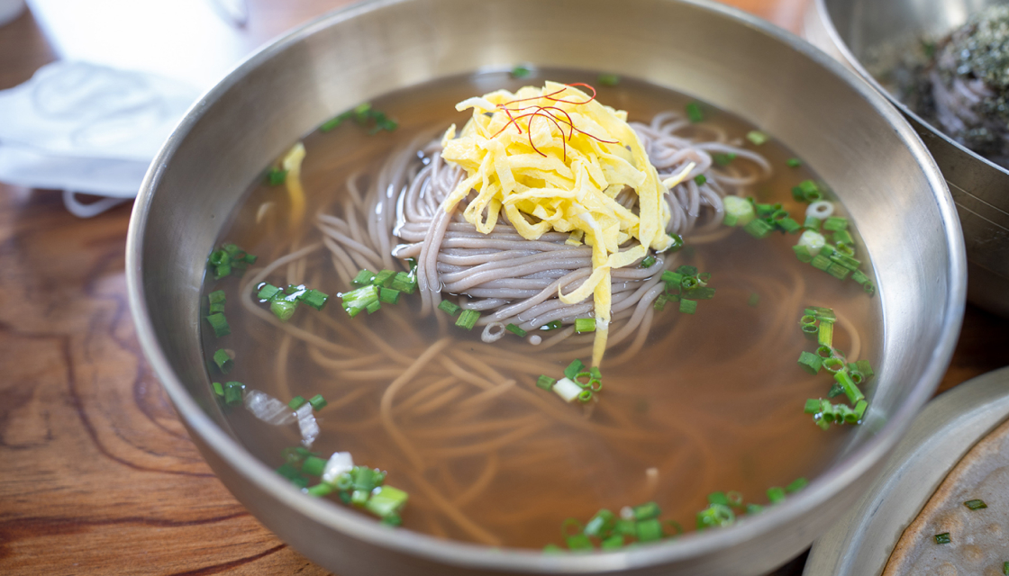 직접 뽑은 100% 쫄깃한 메밀면으로 만든 메밀 들기름면, 동치미 물냉면, 비빔면, 온면, 소바를 드실 수 있습니다.