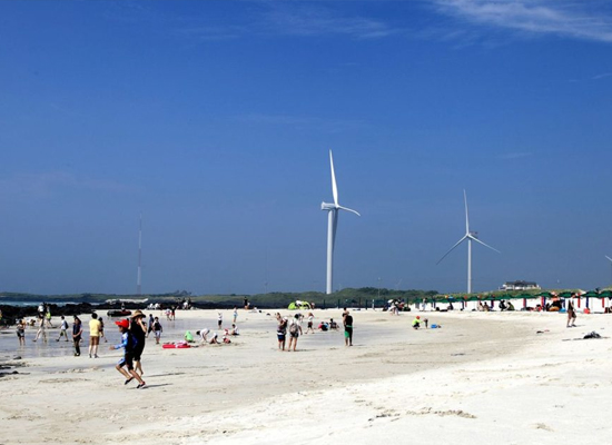 하얀 모래에 부서지는 파도들이 시원한 소리를 내고, 코발트빛 바다 풍경에 빠져보세요. 갓돔과 노래미 돔이 잘 잡히는 갯바위 낚시터가 낚시꾼들에게 인기 있는 명소입니다. 제주의 자연을 그대로 느낄 수 있는 지질 트레일이 있어 쉬엄쉬엄 걸어볼 수 있어요. 해변 산책을 하며 시원한 바다에 풍덩 빠져보는 즐거움도 누릴 수 있답니다. 푸르른 바다와 대비되는 흰 풍력발전소가 마치 해외에 온 듯한 느낌을 주는 곳. 김녕 해수욕장. 근처에는 용천동굴, 당처물 동굴, 만장굴 등 시원하고 신기한 제주의 동굴이 있어요.