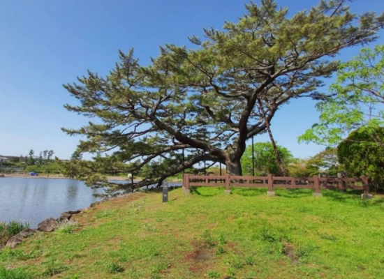 중간쯤 올라가면 수산저수지의 풍경이 보이기 시작하고, 정상에서는 운동기구들을, 정자 옆의 작은 연못에서는 개구리와 작은 생물을 볼 수 있습니다. 높다란 곰솔 나무가 지켜주고 있는 저수지입니다. 수산저수지는 수산봉 기슭에 자리 잡은 제주에서 보기 드문 큰 면적의 인공 저수지입니다. 올레길 16코스를 따라 수산봉을 지나 저수지 방향으로 걷다 보면 수산리를 지키는 천연기념물 곰솔 나무가 있는데, 400여 년이나 지난 이 곰솔은 마을의 수호목으로 주민들이 적극 보호하는 등 문화적 가치가 매우 높습니다. 곰솔나무를 지나면 30,000평이 넘는 수산저수지가 멋진 풍광을 자랑하고 있으며, 아름다운 경치를 보기 위해 올레꾼들이 꾸준히 찾아와 둑길에 앉아 휴식을 취하기도 합니다. 또한 낚시를 즐기는 사람들은 낮이나 밤에 찾아와 이곳에서 붕어나 잉어를 낚시합니다. 듬직한 수호목이 반기는 수산저수지에서 제주 바다와는 다른 색다른 매력이 있습니다.