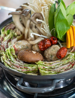 매일 아침 신선한 야채와 소고리를 겹겹이 겹처 정성스레 만든 밀푀유나베