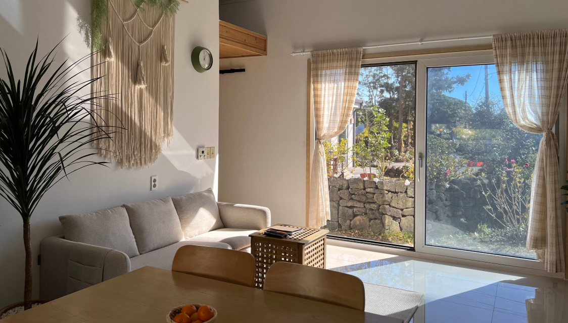 고즈넉한 시골 마을 속 가족 혹은 커플, 친구 등 남녀노소 모두에게 사랑받는 낭만이 깃든 독재 민박이에요. 햇살이 따스하게 집안을 내리쬐는 밤편지랍니다. 쉼을 충분히 즐겼다면 가볍게 산책하는 건 어떨까요? 마을 안 올레 4코스를 따라 길게 산책하거나 일몰을 따라 해안 도로를 드라이브하기에 좋아요.