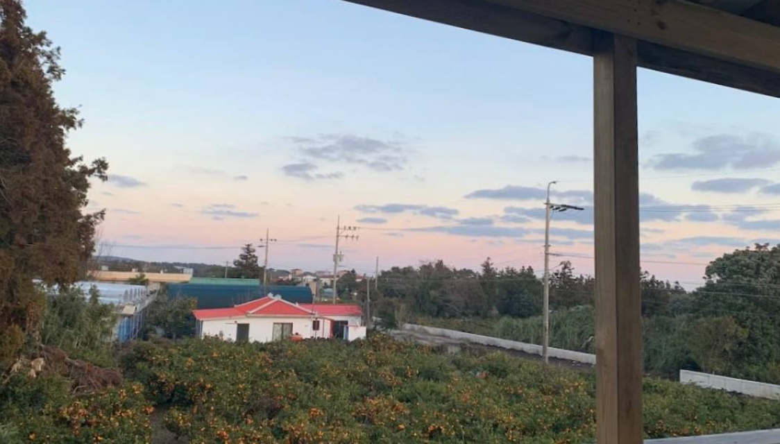 - 숙소 밭 초록 초록한 귤 밭 뷰와 5-6월에 볼 수 있는 마당에 핀 수국들