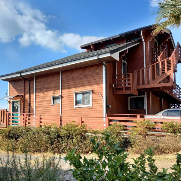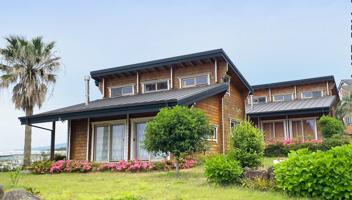 왠지 모르게 영화 티파니에서 아침을의 테마곡 문리버(Moon River)를 흥얼거리게 되는 이곳은, 서귀포의 감귤마을 남원읍에 위치한 정통 스위스 샬레 에요. 핀란드에서 가져온 홍송으로 지은 통나무 집인 만큼 객실에 머물다 보면 소나무의 피톤치트 향을 은은하게 맡을 수 있답니다. 객실 창 밖으로는 한라산과 제주도 앞바다를, 숙소 뒤로는 백이악 오름의 다양한 새소리를 경험해보세요. 힘들고 바쁘기만 한 도시생활에서 벗어나 몸과 마음을 온전히 쉬고 즐길 수 있는 제주도의 힐링 쉼터가 될 거에요.