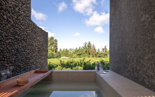 - 귤 밭을 배경으로 즐기는 노천탕