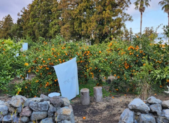 제주 여행에서 감귤을 빼놓을 수 있을까요? 겨울이 아니어도, 나무에 열린 감귤을 볼 수 있는 곳이 있는데요. 서귀포시 남원읍에 있는 제주 농촌 생태 체험농장 ‘가뫼물’이 그곳입니다. 곶자왈 물이 모이고 모여 큰 웅덩이 물이 생기고, 그 물을 옛 제주인들은 마시면서 밭 일을 했습니다. 이 물은 주위에 사는 동물과 가축에게도 없어서는 안 될 중요한 생명수였다고 전해지지요. 날이 아무리 가물어도 항상 물이 흐르고 마르지 않는 샘이라고 하여 붙여진 이름이 바로 ‘가뫼물’입니다.