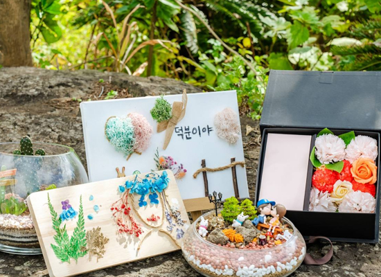 유기농 블루베리로 직접 만들어보는 ‘블루베리 청’과 ‘블루베리 케이크’ 만들기 체험입니다. 블루베리 청에는 다른 재료가 들어가지 않습니다. 블루베리를 냄비에 듬뿍 넣고, 한참 동안 조려주면 블루베리 자체에서 물기가 생깁니다. 설탕을 넣고, 졸아든 만큼 블루베리를 더 넣어서 달콤하게 조립니다. 완성된 블루베리 청은 따뜻한 차나 시원한 에이드를 만들어 음료로도 즐길 수 있고, 빵에 발라먹어도 블루베리의 향과 달콤한 맛을 즐길 수 있습니다. 블루베리 케이크 체험 역시 아이들이 좋아하는 체험입니다. 케이크 빵을 반으로 갈라 생크림을 잔뜩 얹어 만듭니다. 원하는 만큼 블루베리를 넣고 빵을 덮은 후, 다시 생크림을 발라 감귤과 허브, 블루베리로 장식합니다. 엄마와 아이가 함께 체험했기에 뿌듯함은 더하고 무슨 재료로 만들었는지를 알 수 있어 안심이 되지요. 이외에도 인형 만들기 체험, 마크라메 만들기 체험, 드림캐쳐 만들기 체험 등의 수공예품 체험도 진행할 수 있습니다. 또한 플라스틱을 재활용하여 다육이, 수국 등 에코 힐링 화분 만들기 체험과 수경재배를 통한 원예 치료 프로그램도 진행합니다. 느긋하게 시간을 갖고 체험한다면 아이들의 집중력을 키우기에도 도움이 되고, 제주의 자연을 공유하며 즐길 수 있는 휴식의 장소가 될 것입니다.