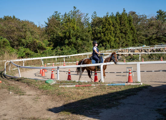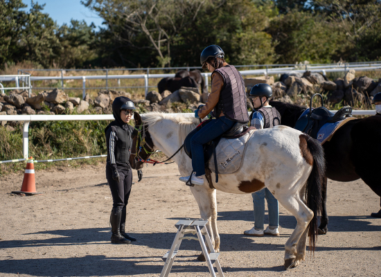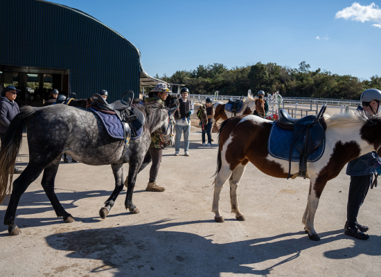테마타운에서 체험할 수 있는 다양한 프로그램 중 가장 특별한 프로그램은 바로 승마 체험이있습니다. 제주도 내 다양한 승마체험장이 있지만, 제주의 자연 속에서 관광객들, 도민들이 편하게 체험을 즐길 수 있는 곳은 드물지요. 이곳에서의 승마 체험이 더욱 특별한 이유는 단순히 말 위에 올라 승마 체험을 하는 것이 아닌, 말과 함께 걷고 호흡하며, 말과 교감하며 공존하는 과정을 더 중요하게 생각한다는 것입니다. 또한, 600m를 천천히 걸으며 체험하는 체험 승마, 1시간 승마 프로그램인 강습 승마, 10.5km 거리의 자연숲을 달리는 외승 승마 등 초급자부터 중급자까지 모두가 즐길 수 있는 다양한 프로그램이 운영되고 있습니다. 사람, 자연, 역사가 하나 됨을 느껴봅시다. 매년 청명한 가을이면, 옷귀테마타운을 중심으로 ‘헌마공신 김만일의 고향’이란 주제로 ‘제주 의귀 말 축제’가 열려 많은 사람이 이곳을 방문합니다. 제주마의 가치와 제주의 공동체문화가 함께 공존하는 중산간 마을이 의귀리입니다. 드넓게 펼쳐진 푸른 초원, 피톤치드 가득한 편백나무숲과 비자나무숲을 간직한 제주마의 본향 의귀리 옷귀테마타운에서 말과 교감하며, 자연이 주는 고마움을 느끼는 시간을 가져봅시다.