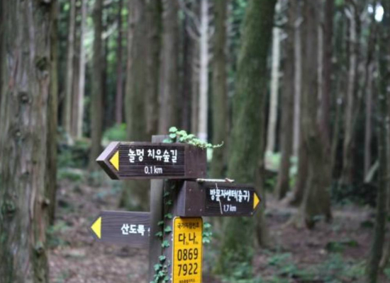 <치유의 숲>은 ‘가멍오멍 숲길’이라는 메인 코스와 9개로 갈라 뻗어지는 코스로 이루어져 있습니다. 1명이 겨우 지날 정도로 좁은 산책로도 있는데, 깊다란 숲을 가로지르는 느낌이지요. 각 길에는 중간중간 쉬어갈 수 있는 쉼터가 있으며, 누워 쉴 수 있는 편백 침대도 마련되어 있습니다. 숲은 사람의 이야기를 품습니다. <치유의 숲>은 인체의 면역력을 높이고 건강 증진을 목적으로 조성된 산림입니다. 숲속 다양한 환경요소를 활용한 힐링 프로그램이 준비되어 있으니 참고해주세요.