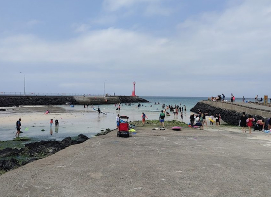제주의 스노클링의 성지로 떠오르는 김녕 세기알해변은 새하얀 모래에 에메랄드빛 바다가 펼쳐집니다. 수심이 얕고 파도가 잔잔해요. 고운 모래 바닥이라서 물에 둥둥 떠서 바다를 헤엄치며 자유로움을 느껴보세요. 해변에 가까운 곳은 수심이 얕아 아이들과도 안전하게 놀 수 있어요. 다만, 조금 깊이 나가면 수심이 깊은 곳도 있으니 안전에 유의하며 놀아봅니다. 패들 보트와 요트를 즐길 수 있어요. 빨간 등대와 하얀 풍력발전기와 함께 스냅사진을 찍기에도 좋은 장소입니다.