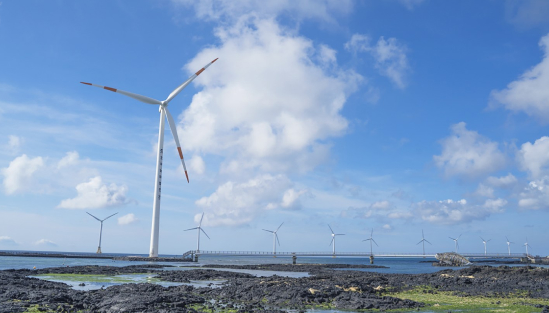 - 한줄로 늘어선 풍차+바다가 만든 풍경