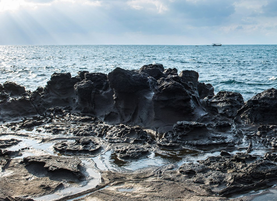 수월봉은 차귀도로 떨어지는 낙조를 관찰할 수 있는 곳으로, 수려한 지질 자원과 경치를 즐길 수 있는 트레일 코스입니다. 높이 77m의 수월봉은 작은 언덕 형태를 하고 있지만, 해안 절벽을 따라 드러난 화산재 지층 속에 남겨진 다양한 화산 퇴적구조로 인해 화산학 연구의 교과서 역할을 합니다. 경관이 아름다울 뿐만 아니라, 지구 과학적으로 중요해 유네스코에서 세계지질공원으로 지정되어 있습니다.
