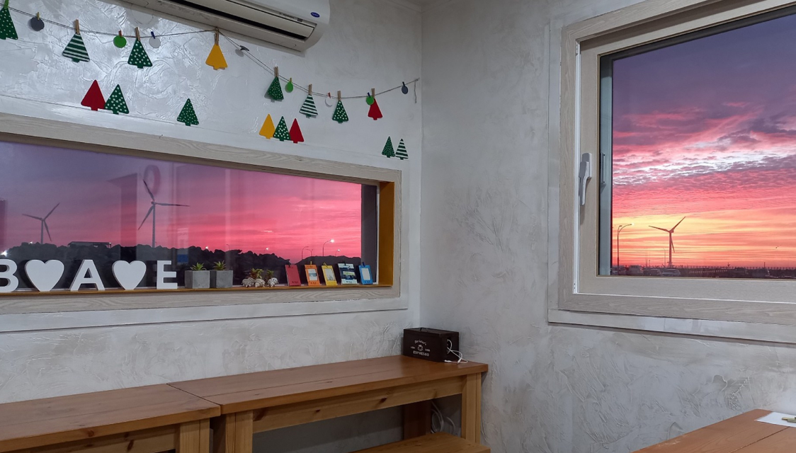신창항 바로 앞에 위치한 배배게스트하우스는 관광객이 많이 없는 한적한 마을에 위치합니다. 서쪽에 위치해 있어 전 객실에서 신창 풍차 해안 풍경과 돌담이 있는 제주 마을의 아름다운 전경을 통창으로 볼 수 있어요. 조용히 스스로에게만 집중할 수 있는 시간을 누려보세요.