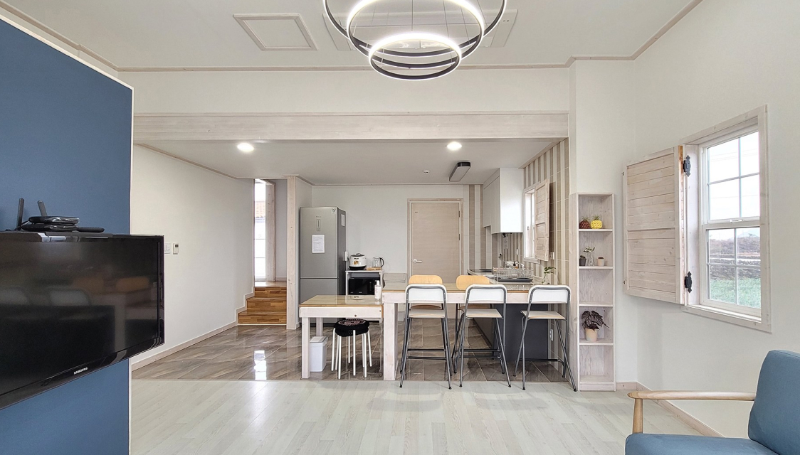 푸릇푸릇 예쁜 잔디마당에서 신창리 풍차 해안 도로와 한라산 뷰가 막힘없이 파노라마로 펼쳐지는 제주의 자연을 만날 수 있는 숙소입니다. 여행이 진정한 힐링이 될 수 있도록 청결함은 기본! 내 집 같은 편안함 속에 우리 가족만의 특별한 추억을 담을 수 있는 곳입니다.