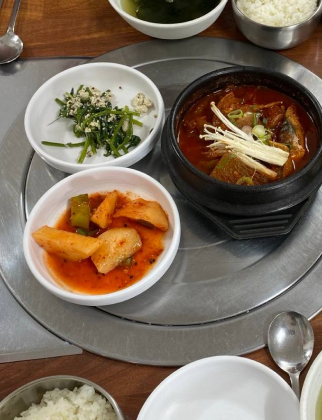 제주도에 오면 먹어야 하는 고소한 갈치구이, 고등어조림, 성게미역국 이 세 가지를 갈치구이정식으로 한 번에 먹어 볼 수 있어요. 제주에서 흔치 않은 혼밥도 가능하며 11000원이라는 가성비 있는 가격에 준비되어 있어요. 내가 못 먹는 음식은 절대 손님상에 내지 않겠다는 마인드로 장사를 하기 때문에 반찬 하나하나에도 허투루 내지 않고 정성과 진심을 담은 음식을 준비하고 있습니다. 가게는 사장님의 애정 아이템인 전통 인형 장식과 시어머니가 제작해 주신 천연 염색 커튼이 현무암 돌과 조화롭게 꾸며져 있습니다. 기다리실 수 있는 벤치 의자를 배치해 두었어요.