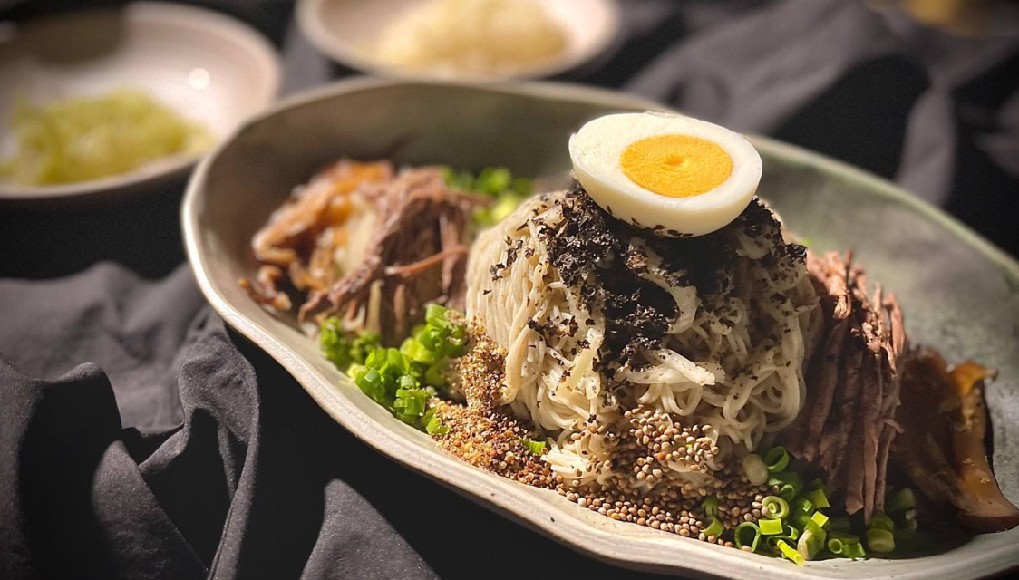 들기름간장골동면 : 골동면은 메밀면에 고기, 채소, 버섯 같은 여러 가지 재료를 넣고 간장 앙념에 비벼 먹었던 과거 궁중요리의 이름입니다.