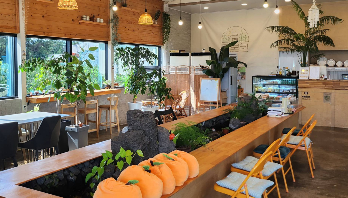 가보카는 저지리 마을 안쪽에 위치해 있으며 귤 밭뷰를 보며 조용하게 힐링하며 머물다 가기 좋은 카페에요. 주메뉴로는 샌드위치와 크로플을 만들고 있어요. 최대한 저지리 로컬 푸드를 이용해 카페 메뉴를 구성해가려고 노력 중입니다! 예를 들면 저지리 딸기를 이용한 생딸기우유와 저지리 미니 단호박으로 만든 단호박 샌드위치와 단호박스무디, 직접 농사지은 청귤과 감귤 등을 이용한 음료들을 만들고 있어요.