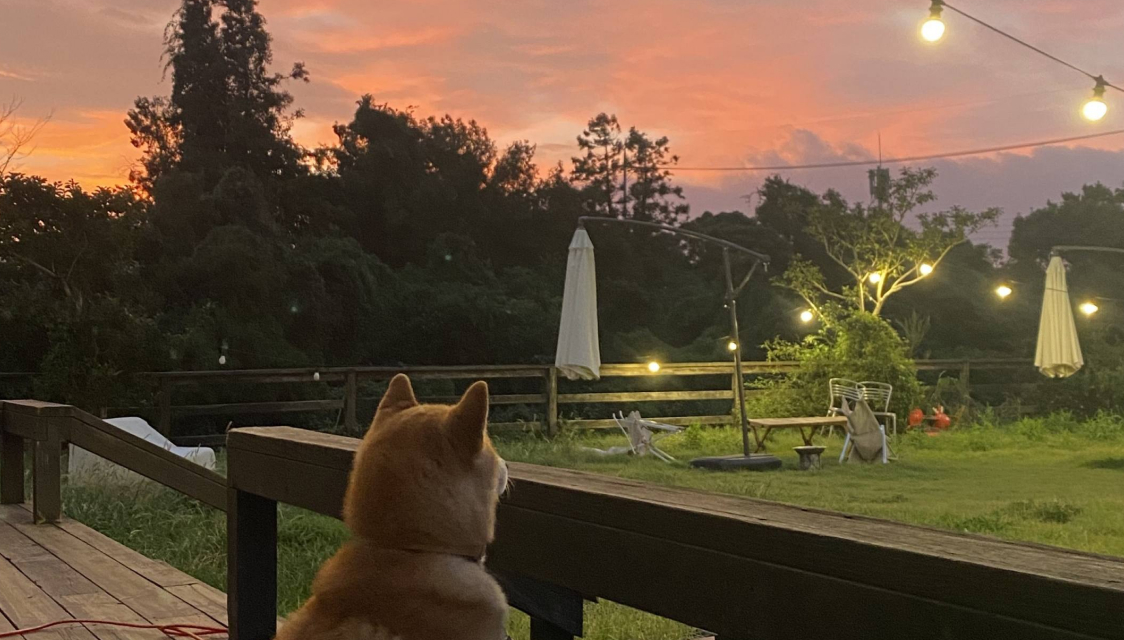 - 마당에 순한 강아지 두 마리가 살고 있어요.