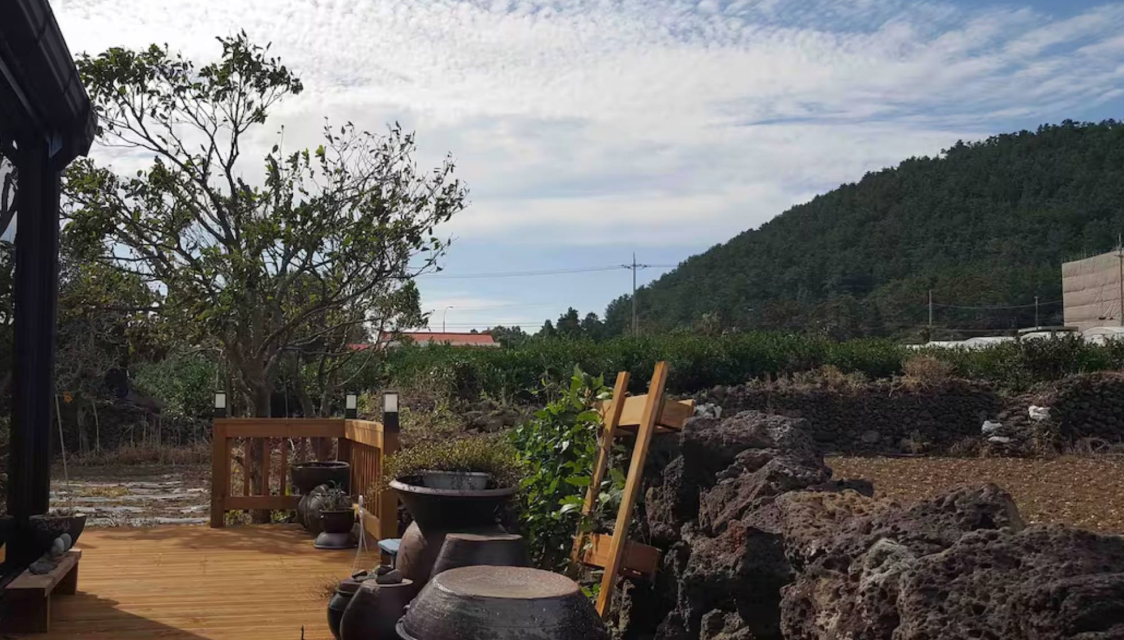 한적한 저지리에서 조금 더 한적한 저지오름 인근에 고즈넉함과 모던함이 공존하는 외갓집이 있습니다. 주변에는 더욱 한적한 귤밭뿐. 외가를 연상케 하는 지긋한 고가구 사이에 짐을 풀고 뽀얀 침대에 앉아보세요. 이상하다… 우리 외할머니는 꽃무늬 이불만 주셨는데… 여기 외갓집 침구는 마치 호텔 같이 느껴집니다. 여심을 제대로 저격하는 부엌에 들어서면 오름, 돌담, 밭뷰 3박자의 제주스러운 풍경에 탄성이 터져 나와요. 벽에 걸린 블루투스 스피커에서 좋아하는 노래가 나온다면 비가 내려 숙소에만 있어도 괜찮을 것 같아요. 어떤 날씨라도 다 받아내는 귤밭 뷰의 통창. 감성이 넘치므로 부엌 보다는 다이닝이라 부르기로 해요. 약속. 눈부신 채광을 받으며 뽀얀 가전들이 만들어주는 조식과 커피 한 잔. 영화에서 본 듯한 장면에 들어와 있는 것 같은데요. 정말 우리 외갓집이었으면 좋겠다 싶어질 때쯤 알 수 있어요. 왜 외갓집인지. 또 오고 싶은 포근함은 외갓집 바로 그 자체거든요. 나만 알고 싶지만, 인기가 많은 관계로 모두의 외갓집이기도 해요.