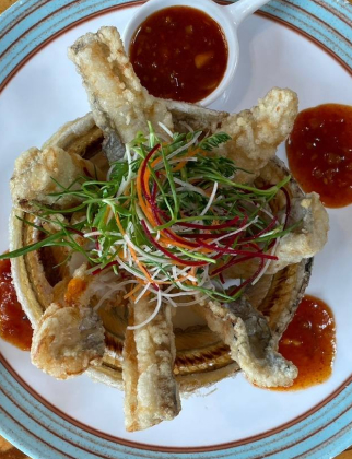 전복 내장을 간장소스로 숙성하여 돌솥에 가열해 먹는 비빔밥