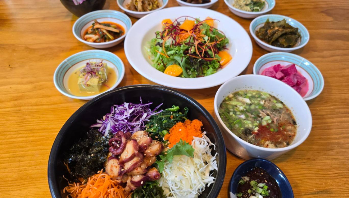 부드럽게 삶아내어 마리네이드 한 돌문어 비빔밥