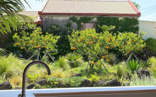 저는 30대로 결혼할 파트너와 함께 하귤스테이를 함께 운영하고 있어요. 코로나 때 어떤 것을 할까 고민하다가 요가와 필라테스 샵을 한림에서 운영하게 되었어요. 제주에 예쁜 집들이 많아서 좋다고 생각했어요. 다른 분들도 여행 와서 제가 지은 예쁜 집에서 머물면서 힐링하며 요가 필라테스를 하면 좋겠다는 생각에 열게 되었습니다. 본채인 안거리 아일랜드 식탁은 현무암으로 이루어져 있고, 식탁 뒤로는 유리온실에 온 듯 통창으로 이루어져 낮에는 그 공간에 햇살이 많이 들어와요.