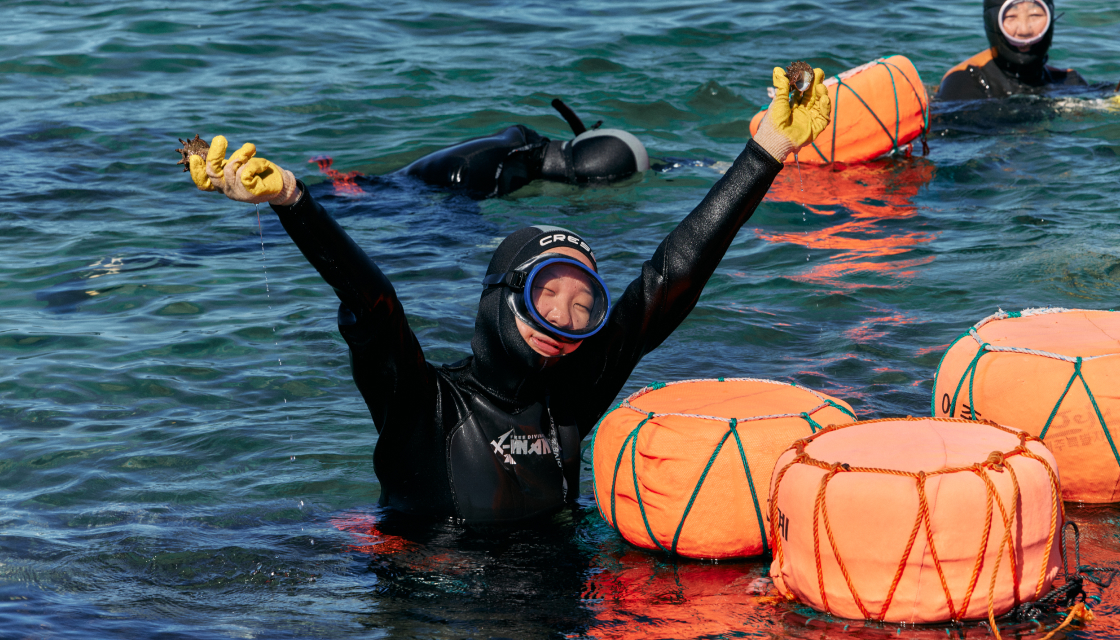 해녀 삼춘들과 함께 에메랄드 빛 김녕 바다로 들어가 직접 해산물을 채취하고, 바당 속에서 숨비소리를 배우며, 김녕리 해녀들이 대대로 지켜온 생활의 지혜를 온몸으로 체험합니다.
