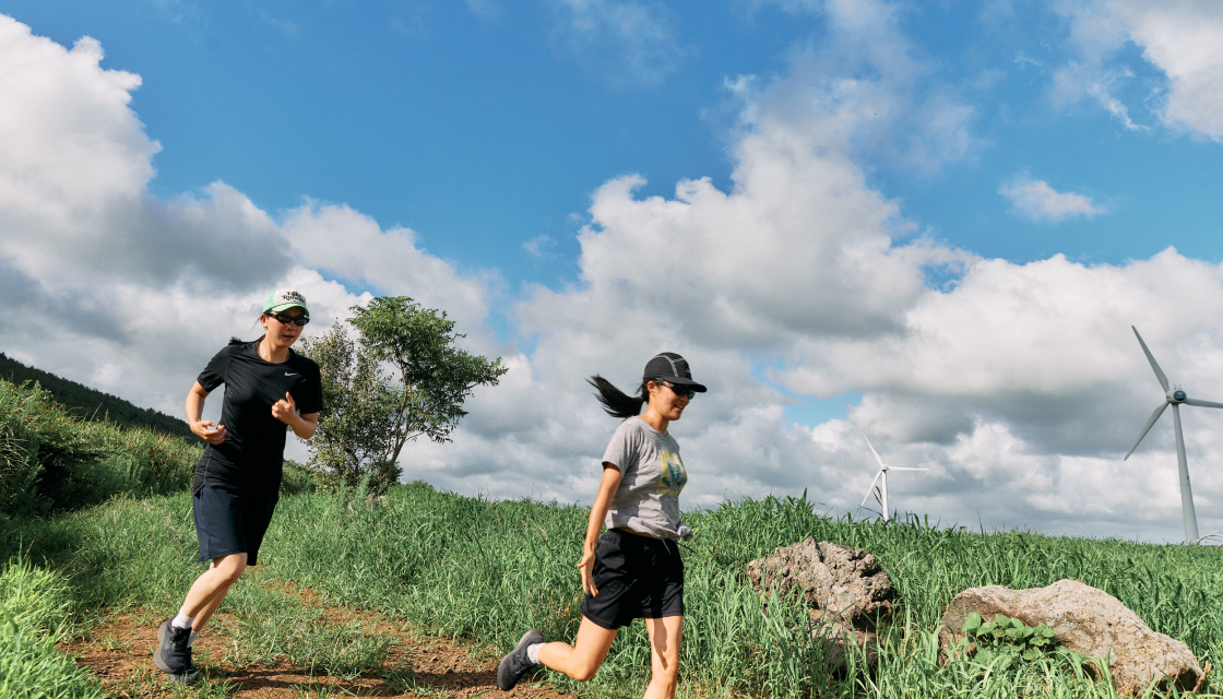 봄에는 노란 유채꽃밭을, 여름에는 푸른 초지를, 가을에는 황금빛 억새밭을 달리며 사계절 다른 매력을 만끽할 수 있어요. 러닝 후에는 유채꽃프라자에서 제주 감귤로 만든 시원한 음료와 함께 달린 코스를 돌아보며 가시리 바람과 함께한 특별한 시간을 마무리합니다