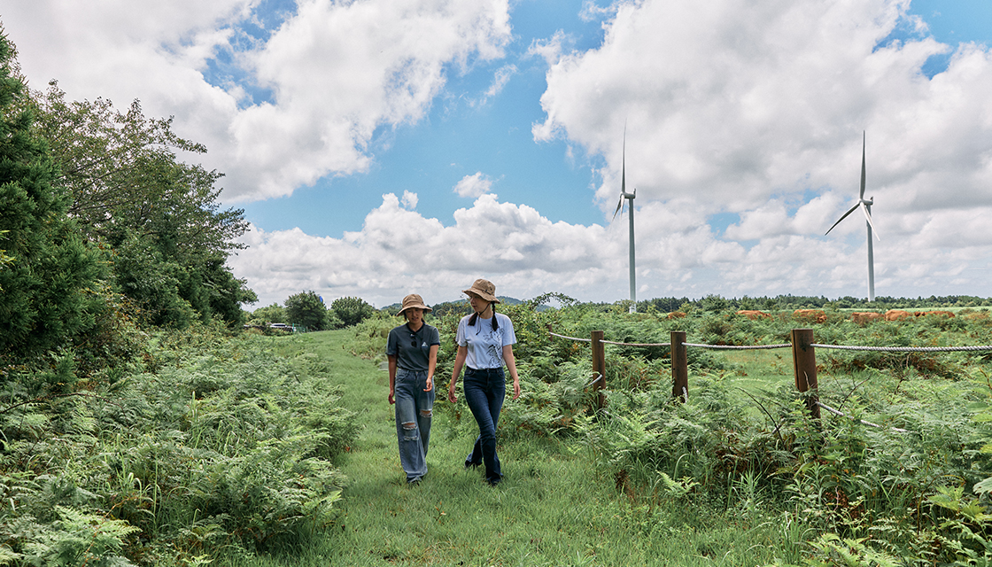 이어서 따라비오름 등반을 시작해 정상에 오르면 제주 최초의 풍력발전소가 바람을 받아 돌아가는 장관을 만날 수 있어요. 오름 정상에서는가시리 전체를 한눈에 내려다볼 수 있으며, 한라산과 제주 중산간의 드넓은 초지가 펼쳐지는 파노라마 뷰를 감상할 수 있습니다. 하산 후에는 가시리 마을의 숨겨진 이야기와 함께 여유로운 마을 산책으로 체험을 마무리합니다.