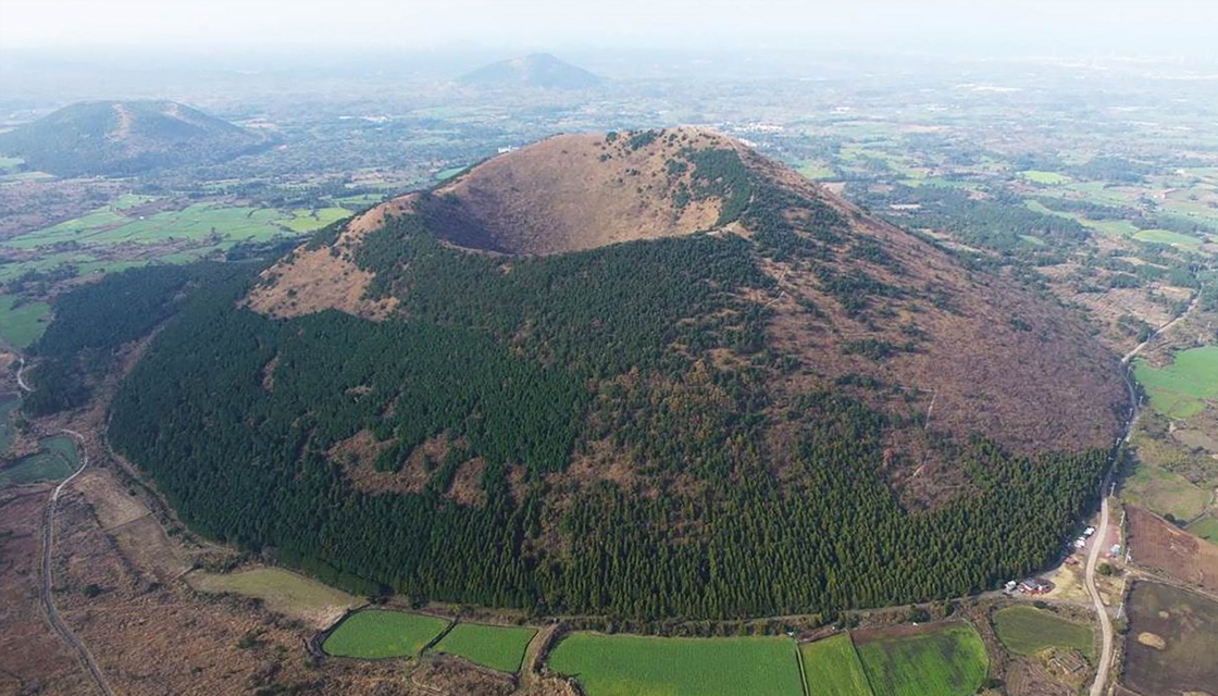 다랑쉬 오름은, 산봉우리의 분화구가 마치 달처럼 둥글게 보인다 하여 다랑쉬(도란 쉬, 달랑 쥐)라 불렸다는 설과, 높다는 뜻의 ‘달’에 봉우리의 뜻을 가진 ‘수리(쉬)’가 합쳐져 불린 이름이라는 주장이 있습니다. 유래의 진위 여부를 떠나, 다랑쉬의 모습은 두 가지 설을 다 만족시킬만한 매력적인 외풍을 가지고 있지요. 마을에 머물며 천천히 다녀오세요. 다랑쉬 오름의 꼭대기의 분화구는 쟁반처럼 둥글게 패어 달을 떠올릴만하며, 송당 일대 어디서나 보이는 솟은 봉우리와 균형미는 오름의 여왕이라고 불릴만한 위엄과 아름다움을 가지고 있습니다. 실제 둥근 굼부리에서 보름달이 솟아오르는 모습은 송당리가 아니면 볼 수 없는 광경이라 하여, 마을의 자랑거리입니다. 지도상 원형을 띄는 다랑쉬 오름의 밑 지름은 1,013m, 전체 둘레가 3,391m로 비교적 큰 몸집을 가지고 있어요. 사면은 돌아가며 어느 쪽으로나 비탈진 급경사를 이루고 있습니다. 산정부에는 크고 깊은 깔때기 모양의 원형 분화구가 움푹 패어있는데, 이 화구의 바깥 둘레는 약 1,500m에 가깝고 화구의 깊이는 한라산 백록담의 깊이와 똑같은 115m라 합니다. 제주 설화에 의하면, 설문대 할망이 치마로 흙을 나르면서 한 줌씩 놓은 것이 제주의 오름인데, 다랑쉬 오름은 흙을 너무 많이 놓아 두드러져서 손으로 탁 쳐서 패이게 한 것이 지금의 분화구라고 합니다.