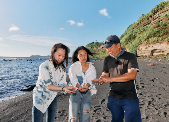 화산 퇴적물이 쌓여 만들어진 검은모래 해안 절벽을 따라 이어지는 지질트레일을 경험하세요. 유네스코 세계지질공원의 독특하고 희귀한 화산지형을 직접 체험할 수 있습니다.