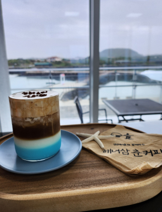 해녀삼춘커피는 마을협의회에서 운영 중이며, 김녕해녀들과 함께하고 있어요. 김녕항 뷰를 만끽하며 직접 만든 음료와 디저트를 맛볼 수 있어요. 앞뒤로 보이는 김녕바다를 바라보며 휴식을 취해보세요.