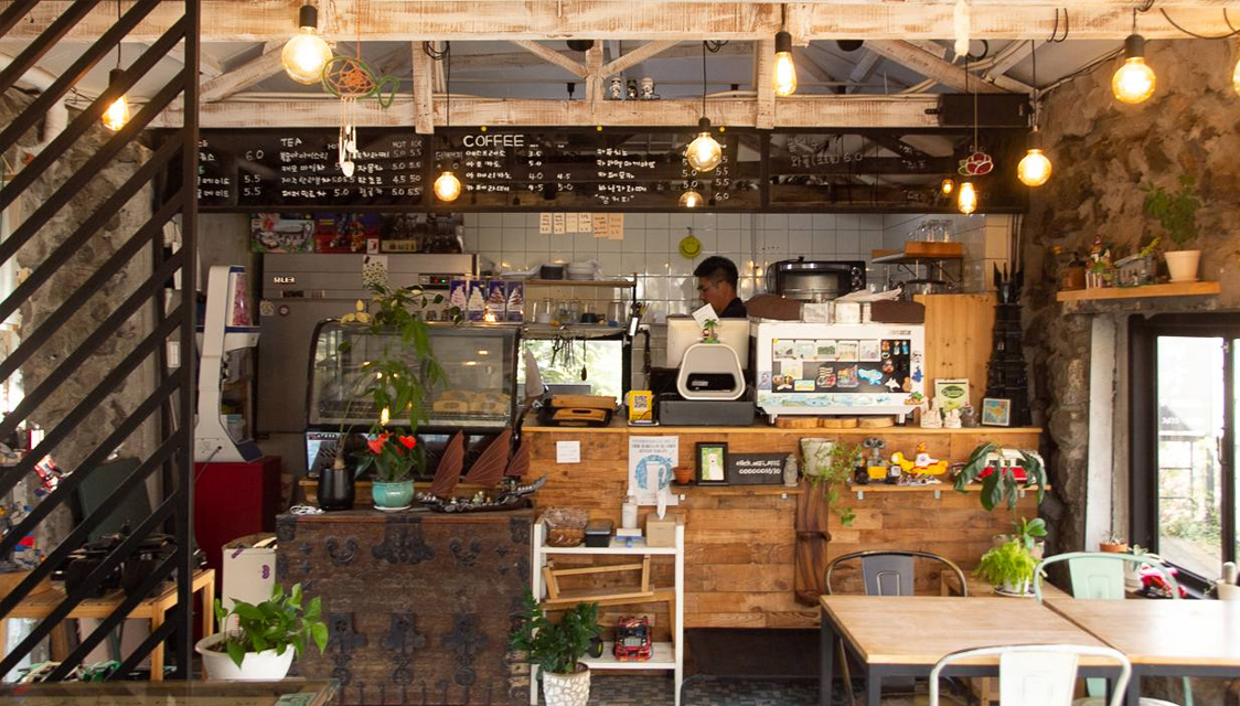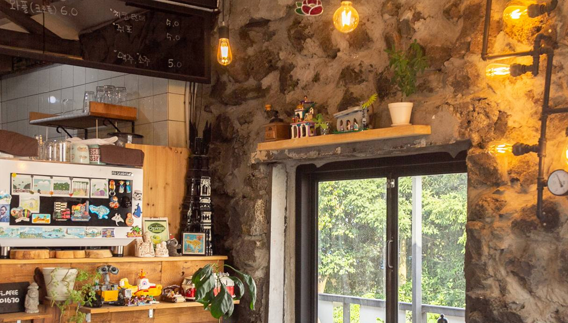 - 빈티지한 돌담 감성의 따뜻한 카페 내부