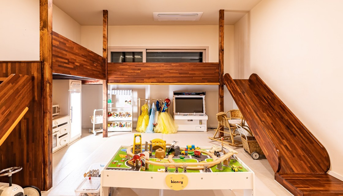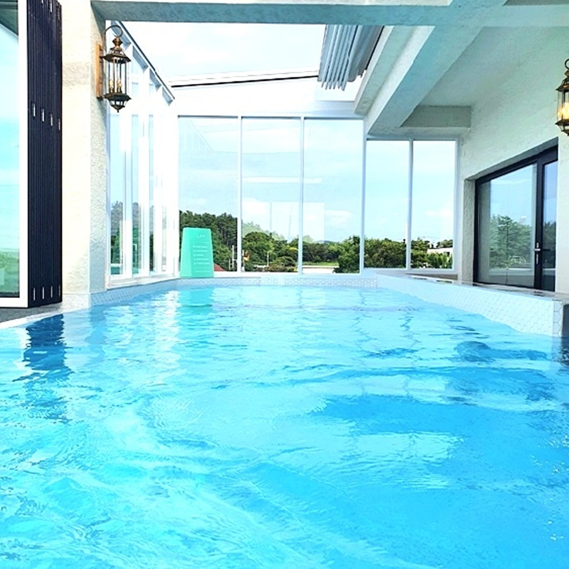 - 키즈카페처럼 신나게 놀 수 있는 실내 놀이터와 실외 사계절 온수풀