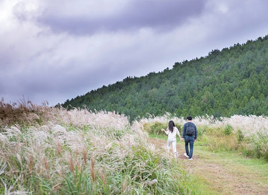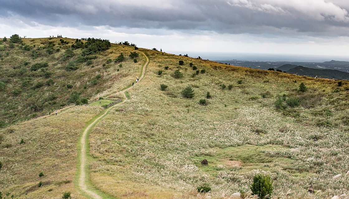 화산이 폭발할 때 분출된 용암은 부드러운 산세를 만들어 냈고, 가을이면 오름을 뒤덮은 억새 군락이 장관을 이룹니다.