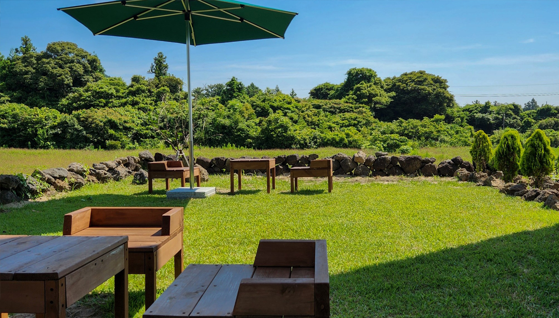 캐나다 유학시절 르꼬르동블루에서 공부를 했어요. 이후 한국에서 일하던 중 만난 아내와 결혼했답니다. 외할아버지가 한평생 사시던 제주 가시리에 자리를 잡아, 시골살이에 소소한 행복을 느끼며 매장을 운영 중이에요. 실내는 아기자기하게 꾸며두었고, 야외 넓은 잔디밭에서는 초록 파라솔과 함께 제주의 자연을 느끼실 수 있을 거예요. 자연과 함께하는 삶을 더욱 만끽하고자 직접 텃밭도 키우고 있답니다.