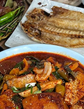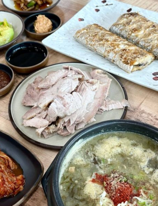 제주도를 한번에 경험할 수 있는 퐁낭정식(흑돼지수육과 멜조림 그리고 몸국)